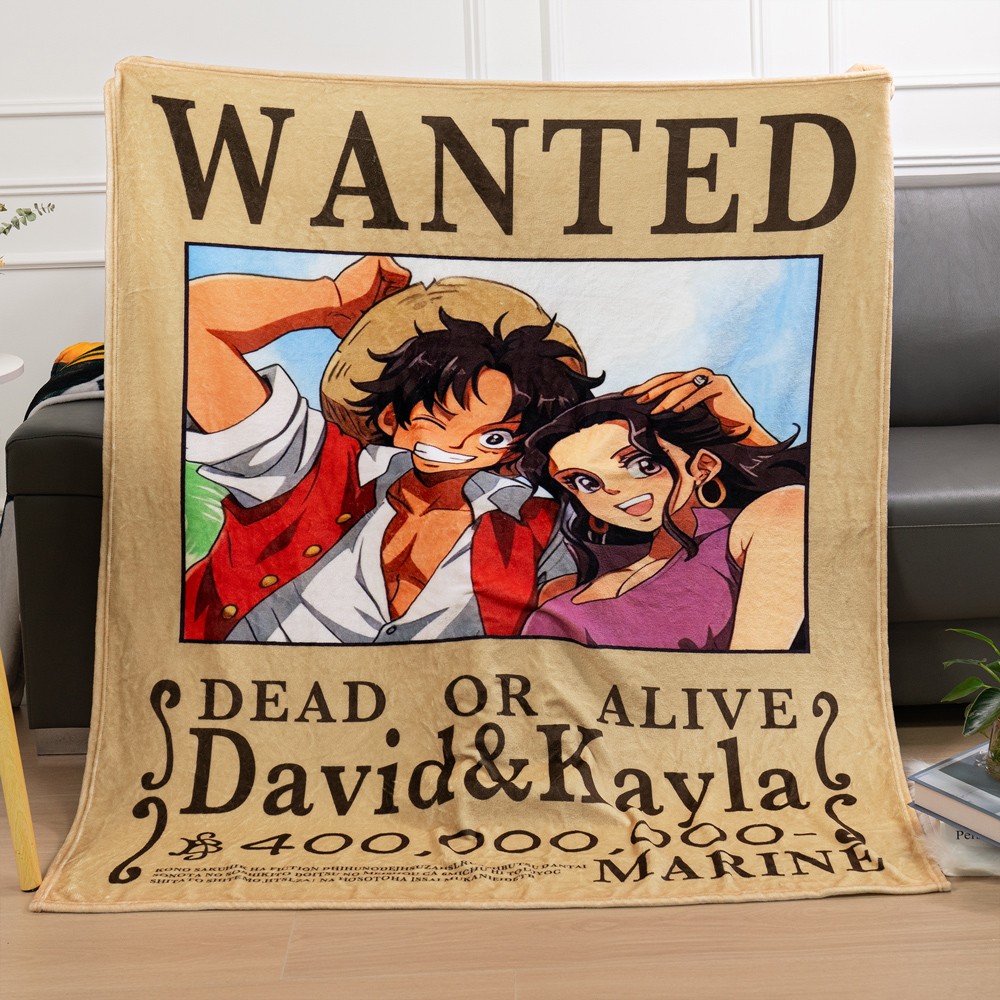 Personalized Couple Anime Portrait Photo blankets.